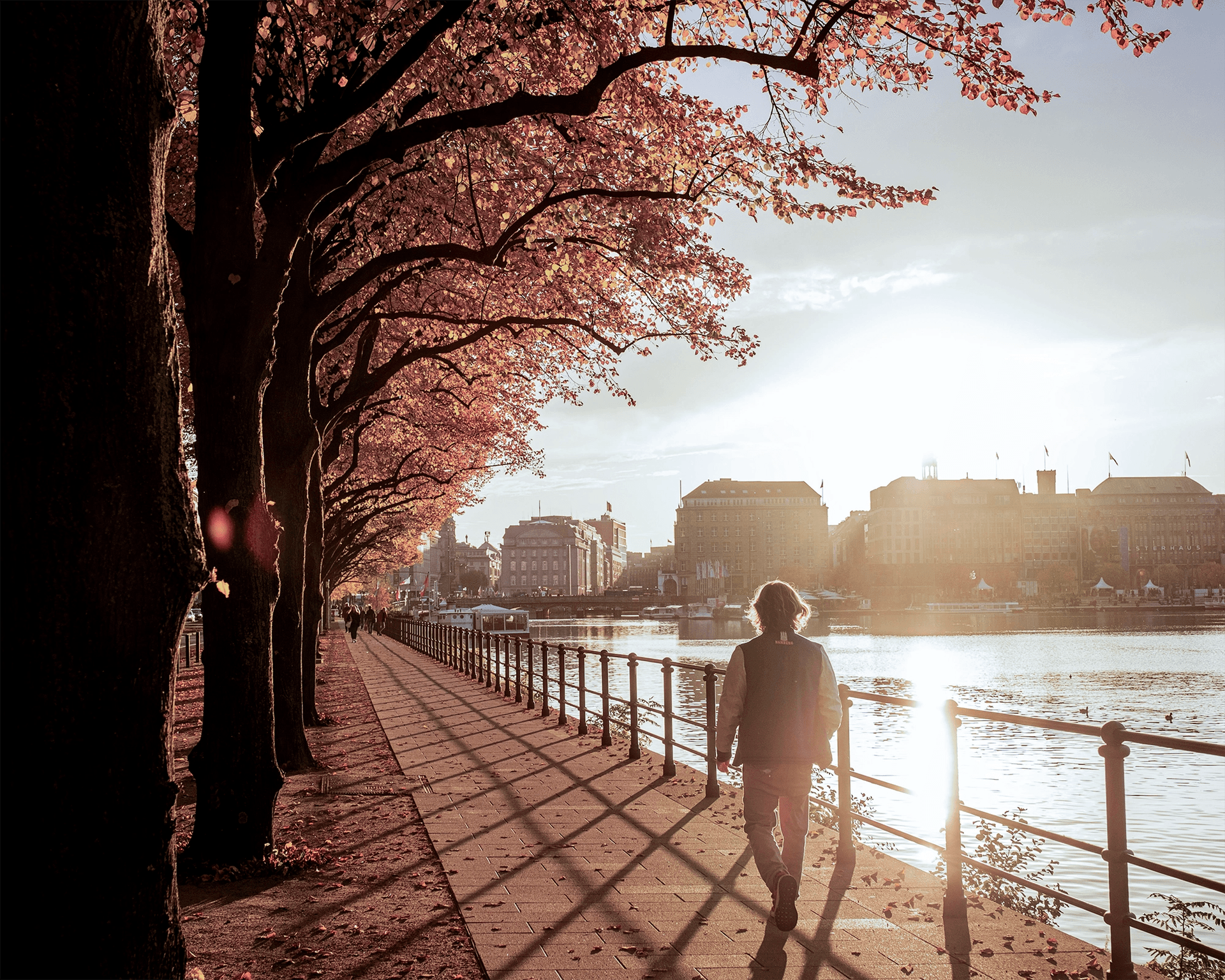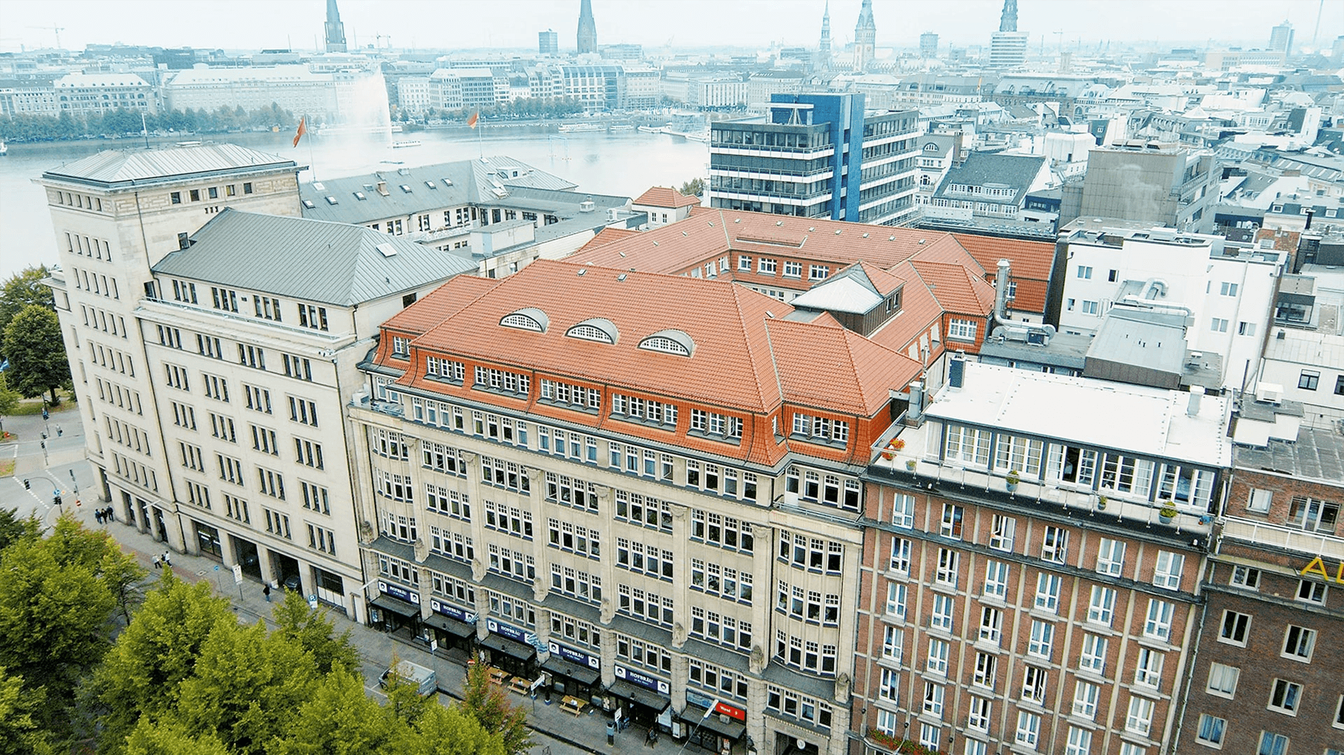 De school biedt een adembenemend uitzicht op de Inner Alster, het beroemde kunstmatige meer van Hamburg, en op de meest fantastische hotels en het winkelgebied van de stad.